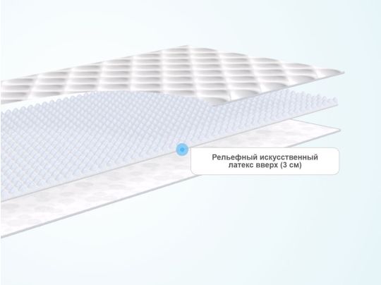 Cenově dostupný model s zdravotní přínosy. Embosovaný umělý latex masíruje měkké tkáně a zlepšuje krevní oběh. Matrace zlepšuje kvalitu spánku, uvolňuje svalové a nervové napětí, zlepšuje pohodu, zabraňuje vzniku otoků a vrásek. Měkký potah jejich bavlněného žakáru je příjemný na tělo. Díky elastickým páskům nebude topper sklouznout z postele.