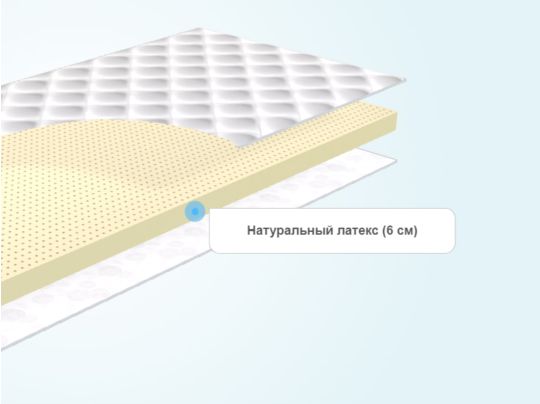Materiál se získává ze šťávy rostliny Hevea. Tato elastická výplň poskytuje dobrou podporu zad a přizpůsobí se křivkám těla, spaní na takovém topperu bude neuvěřitelně pohodlné. Přírodní latex je perforovaný, dobře propouští vzduch a uvnitř matrace se nehromadí vlhkost a prach.