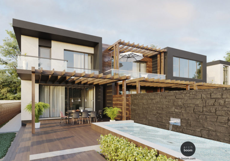 Projekt městského domu v moderním stylu v zástavbě čtvrti Ellington Riviera, Kazachstán