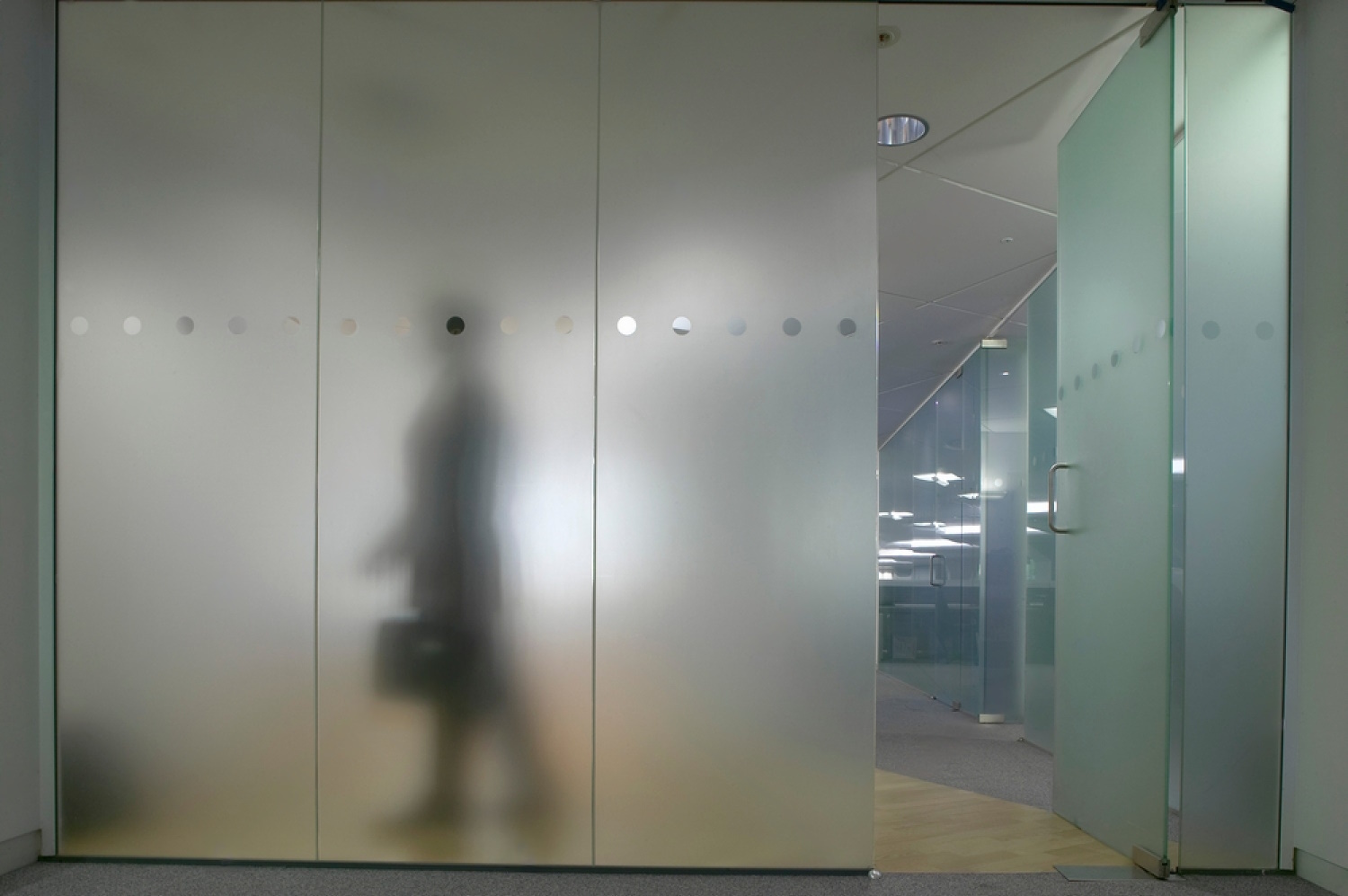 Dopadne-li však na sklo ostrý stín (je-li předmět mezi zdrojem světla a sklem nedaleko od skla; za sklem je zatemněná místnost), je přes zorník vidět nejasný tmavý obrys předmětu. sklo. To je třeba vzít v úvahu při návrhu osvětlení místností se sklem proměnlivého zákalu.