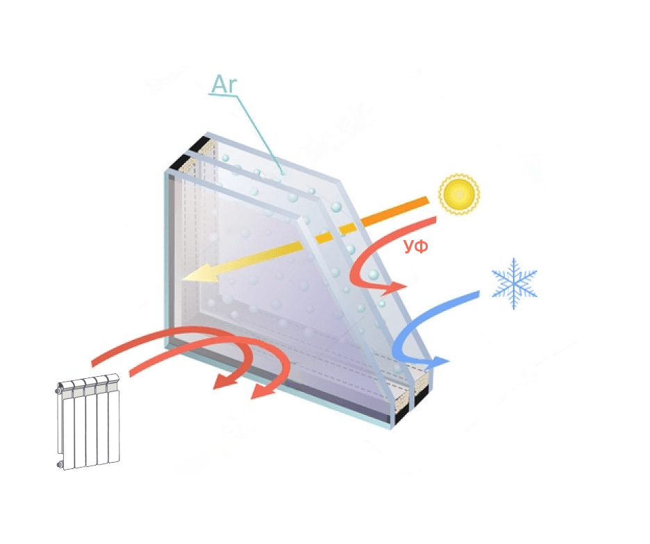 Co je to. Na běžné sklo se nastříká vrstva iontů stříbra o tloušťce několika nanometrů. Sklo zůstává průhledné a propouští sluneční světlo do místnosti. Hlavním rysem nástřiku je, že odráží tepelnou energii z baterií a naakumulované teplo do místnosti. To pomáhá snižovat tepelné ztráty přes sklo, udržovat příjemnou teplotu v místnosti a šetřit náklady na vytápění.